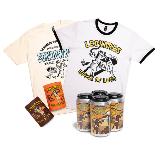 Leonards Limited Edition Sundowner Pale Ale is here! This toe tappin', lip smackin', boot scootin' Pale Ale was created in collaboration with Burnley Brewing and the Leonards House of Love staff.